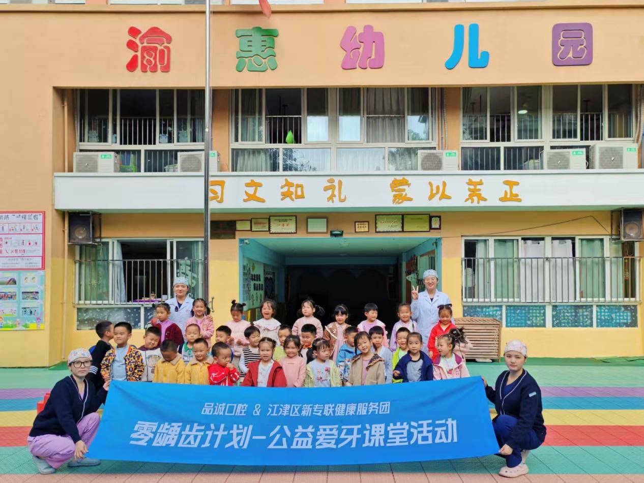 10月28日,双福品诚口腔联合江津区新专联健康服务团走进渝惠幼儿园,为学龄前儿童开展“零龋齿计划——公益爱牙课堂”活动,以“智能检查+趣味课堂+长效防护”为模式。活动为幼儿提供口腔护理服务,让孩子了解口腔健康重要性、掌握护牙方法,为后续口腔健康追踪和知识普及奠定基础,助幼儿养成卫生习惯。
