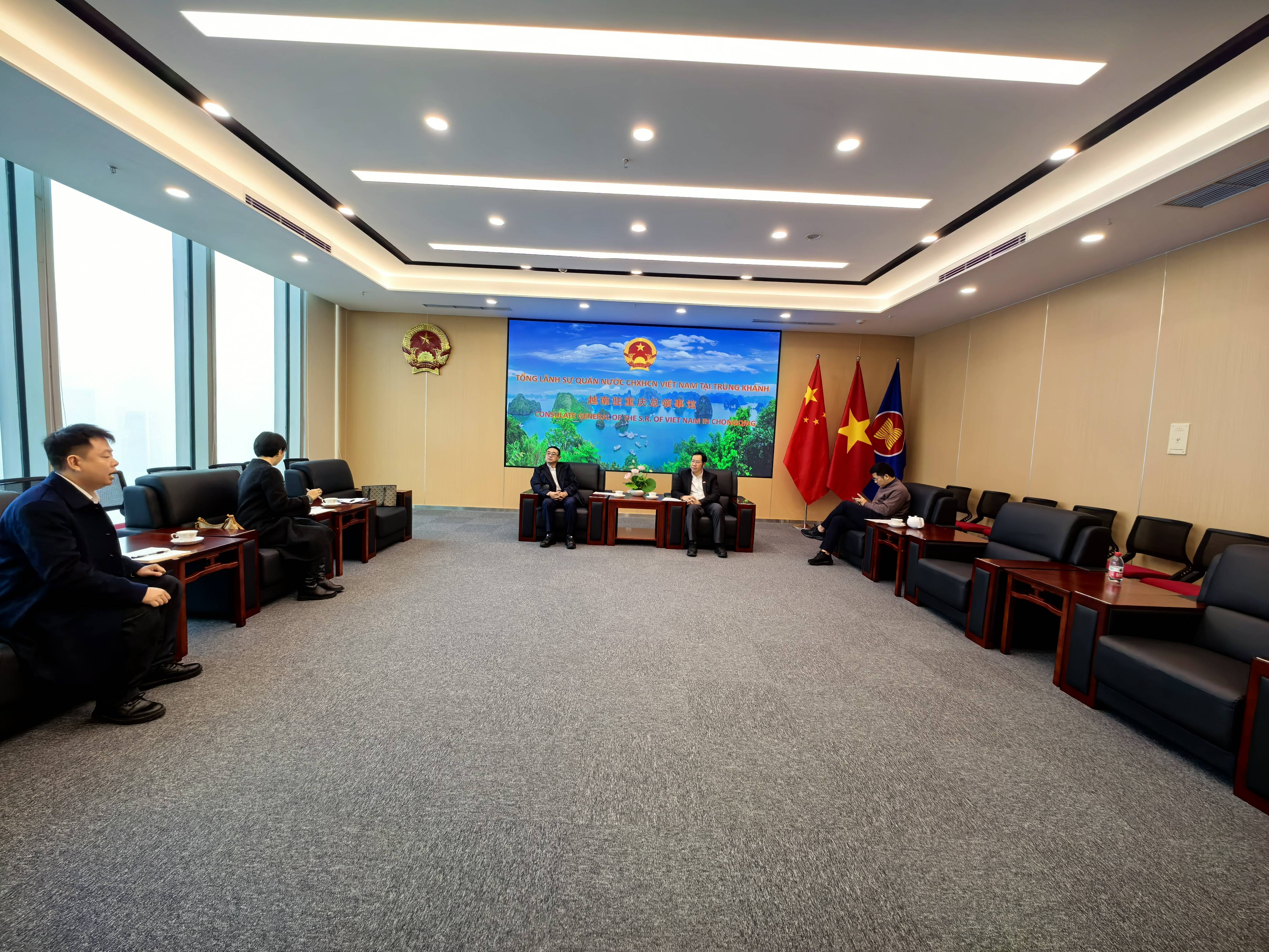 12月18日,重庆市农业农村委员会对外合作处王涯军处长率队赴越南驻重庆总领事馆开展友好交流,市农科院对外合作处代表肖璐、仂昭国际贸易(重庆)有限公司董事长刘媛媛、江津区丰源花椒有限公司总经理杨天旭随行参与。此次拜访以深化农业合作为核心,为渝越特色农产品贸易与科技交流注入新动能。