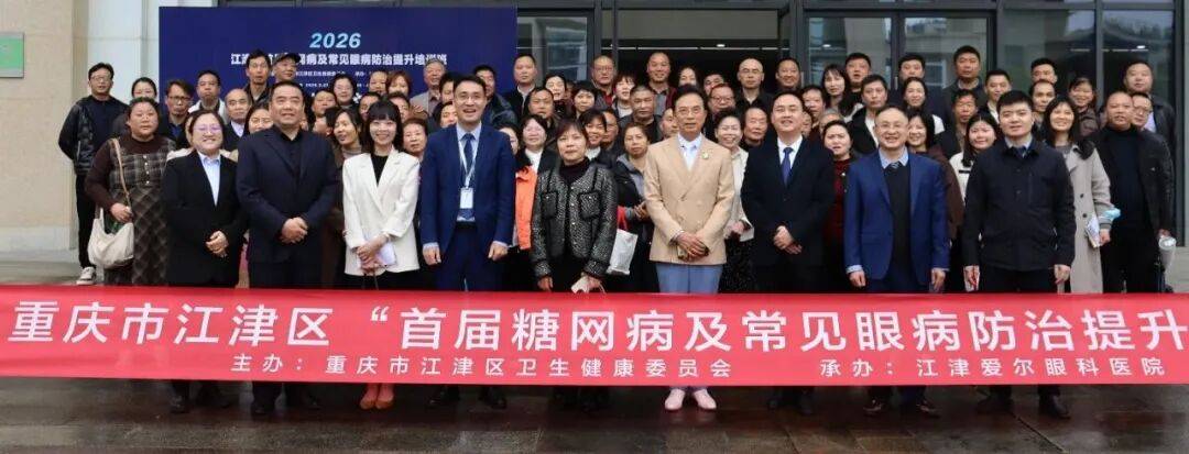 [size=0.8]江津区首届糖网病及常见眼病防治提升培训班在江津中学学术报告厅成功举行!本次会议由江津区卫健委主办、江津爱尔眼科医院承办,江津区卫健委副主任李兴莉、爱尔眼科重庆特区CEO陈茂盛、爱尔眼科重庆特区眼表学组陈元主任、江津爱尔院领导班子、临床团队以及来自江津基层的医疗机构的150余名医生参会!